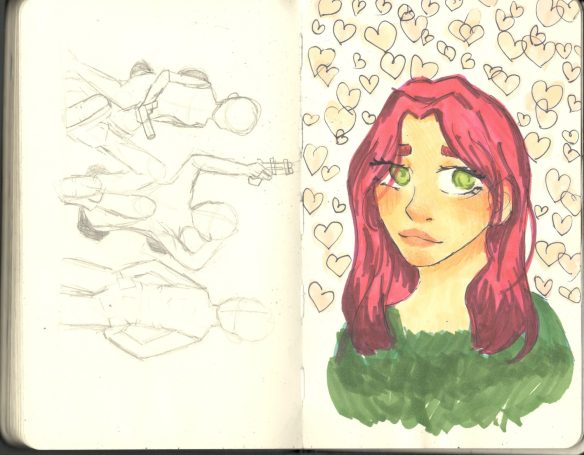 Desde pequeña he estados pintando y dibujando en mis sketch books. Practico en mi tiempo libre; hago esbozos, cómics, cuadros, posters y storyboards. De esta mezcla de dibujo y cine es de donde sale mi amor por la animación.