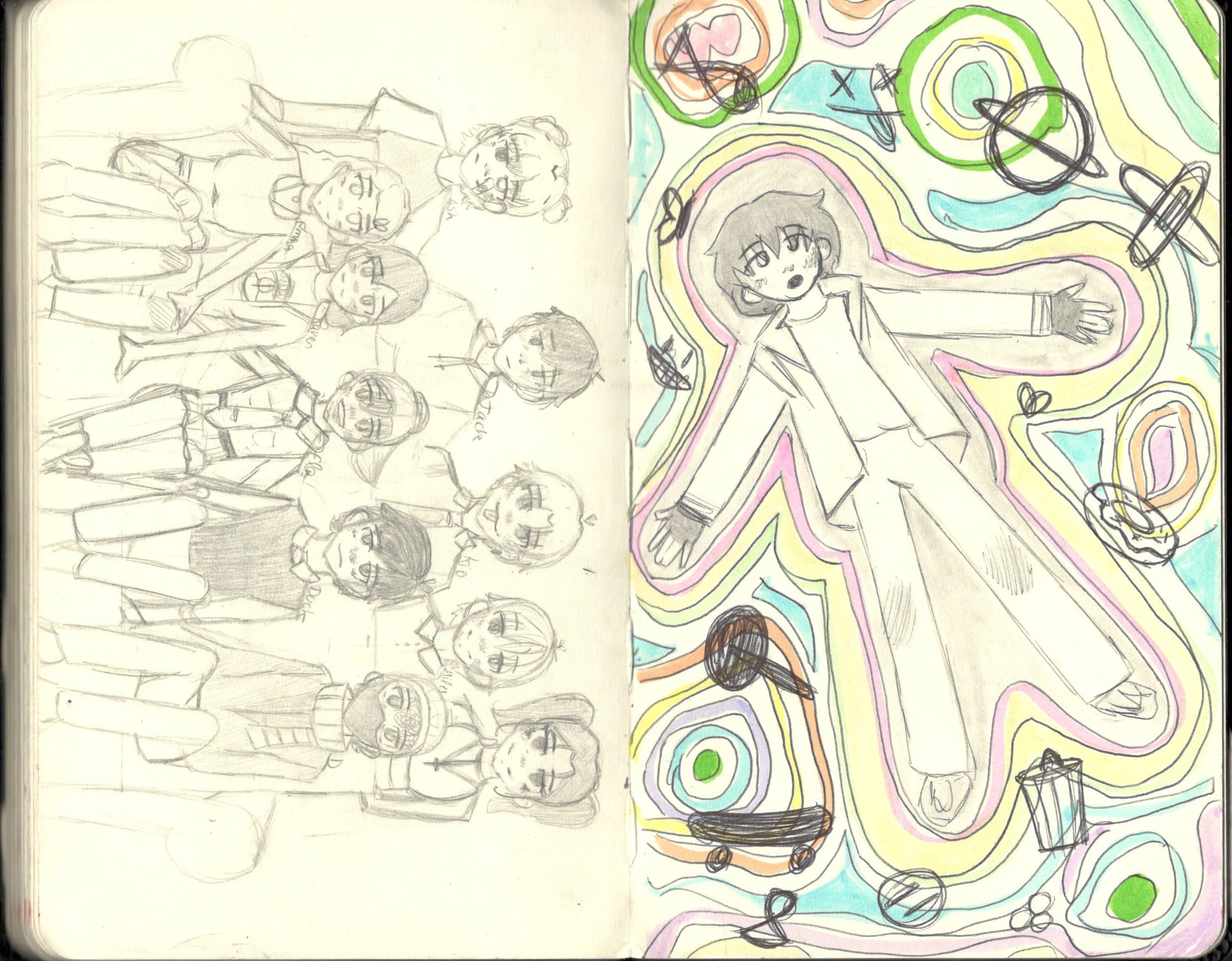 CUADERNO 1: Proceso de aprendizaje de distintas técnicas de dibujo; experimentando formas, colores y patrones/ (2021) 13años